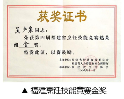 福建烹飪技能競(jìng)賽金獎(jiǎng)